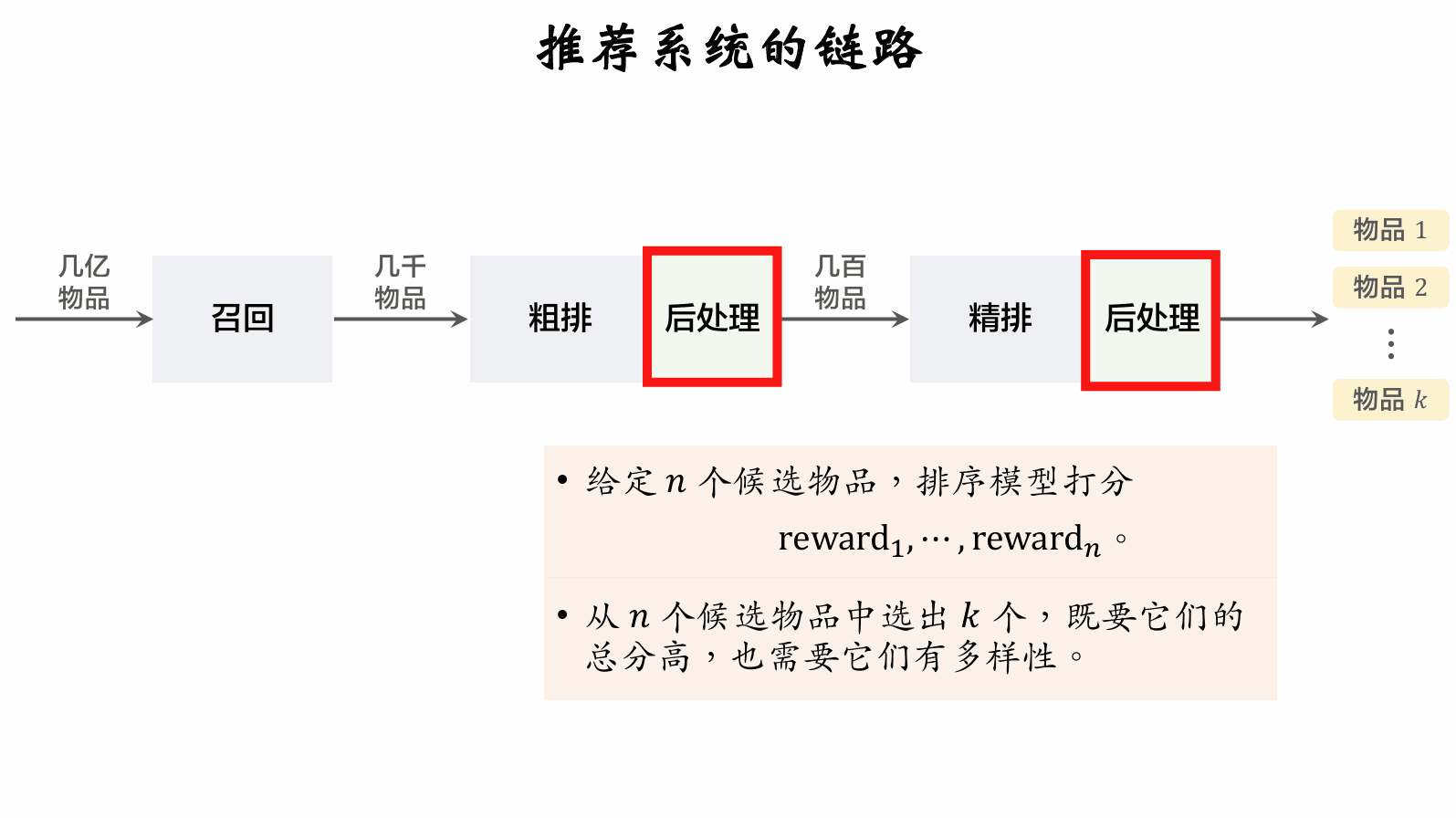 - 从 个物品中选出 个,既要有高精排分数,也要有多样性。
